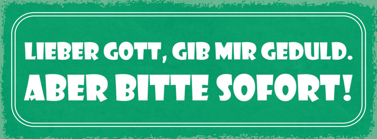 Schild Lieber Gott Gib Mir Geduld Aber Bitte Sofort Wunsch 27x10 Blech od.Holz Im Angebot