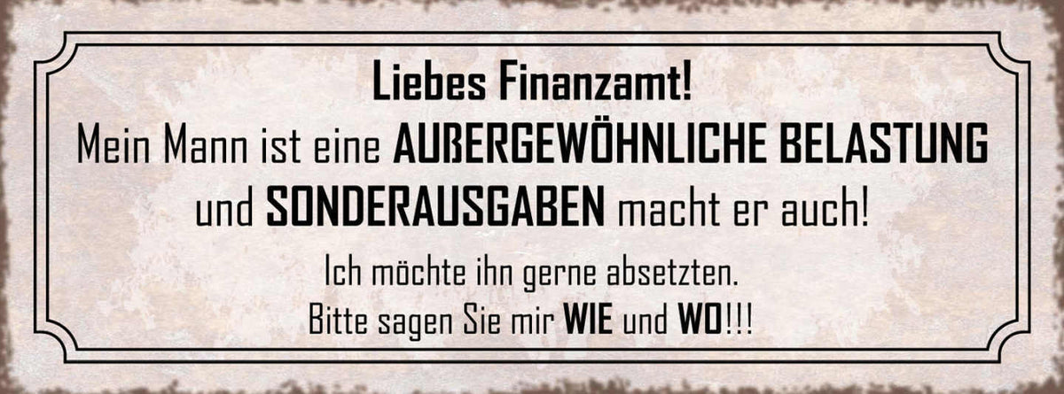 Schild Liebes Finanzamt Mein Mann Ist Eine Ausgewöhnliche Belastung 27x10 Im Angebot