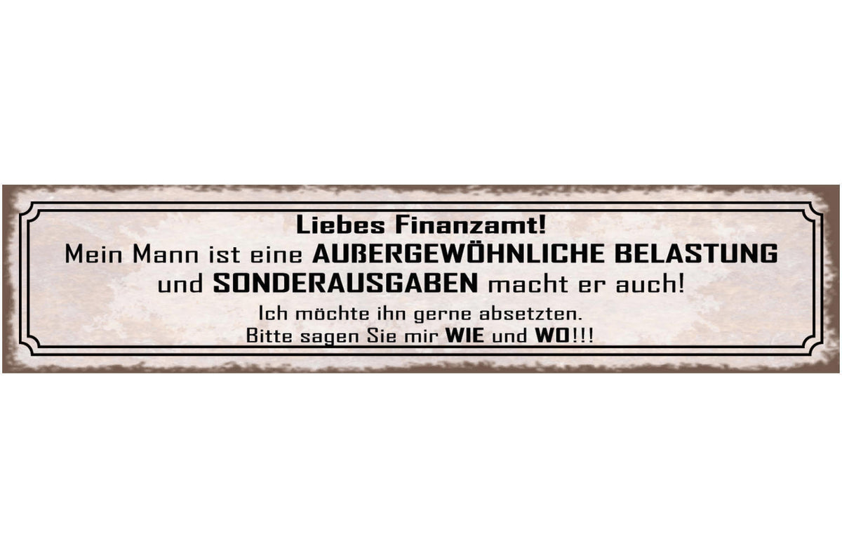 Schild Liebes Finanzamt Mein Mann Ist Eine Außergewöhnliche Belastung Absetzen Im Angebot