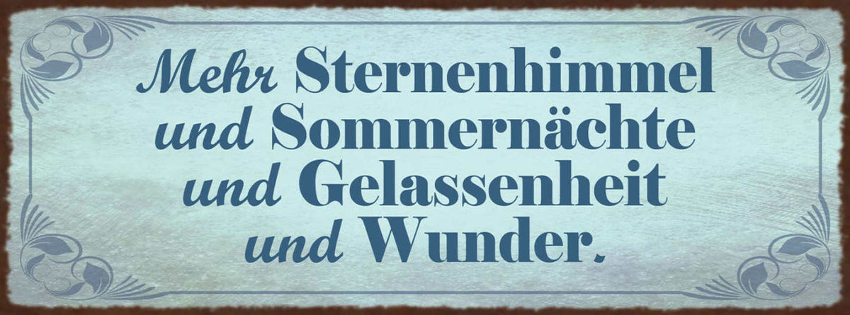 Schild Mehr Sternenhimmel Sommernächte Gelassenheit Wunder 27x10 Blech od.Holz Im Angebot