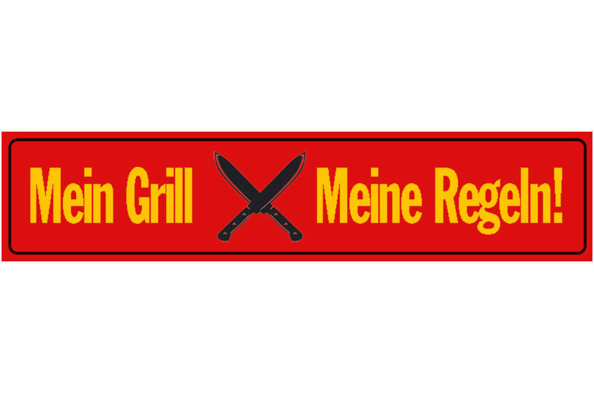 Schild Mein Grill Regeln Grillen BBQ Garten Fleisch Essen 46 x 10 Blech od.Holz Im Angebot