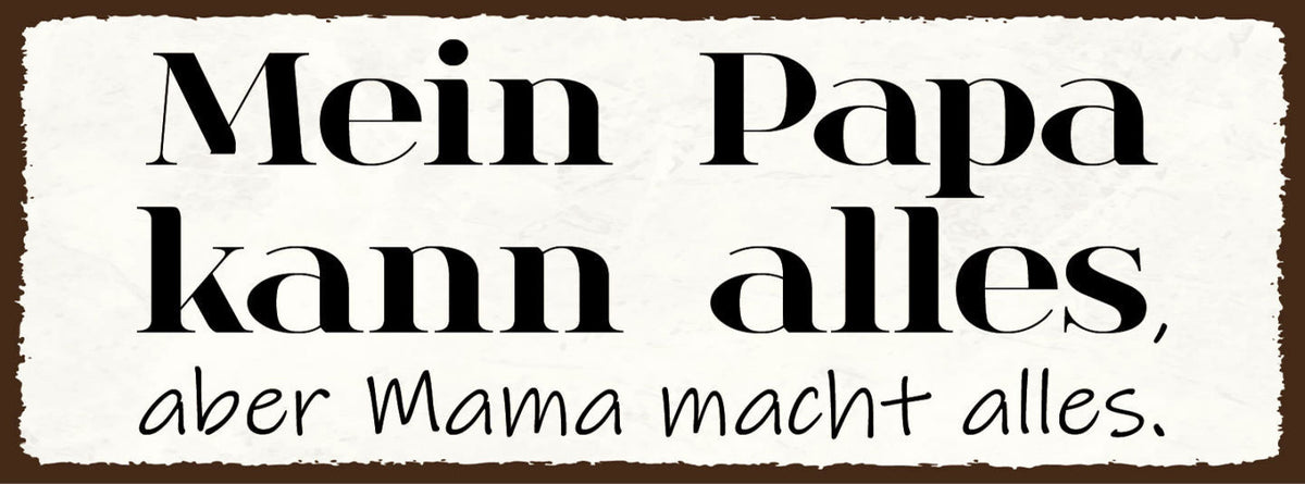 Schild Mein Papa Kann Alles Aber Mama Macht Alles Eltern 27x10 Blech od.Holz Im Angebot