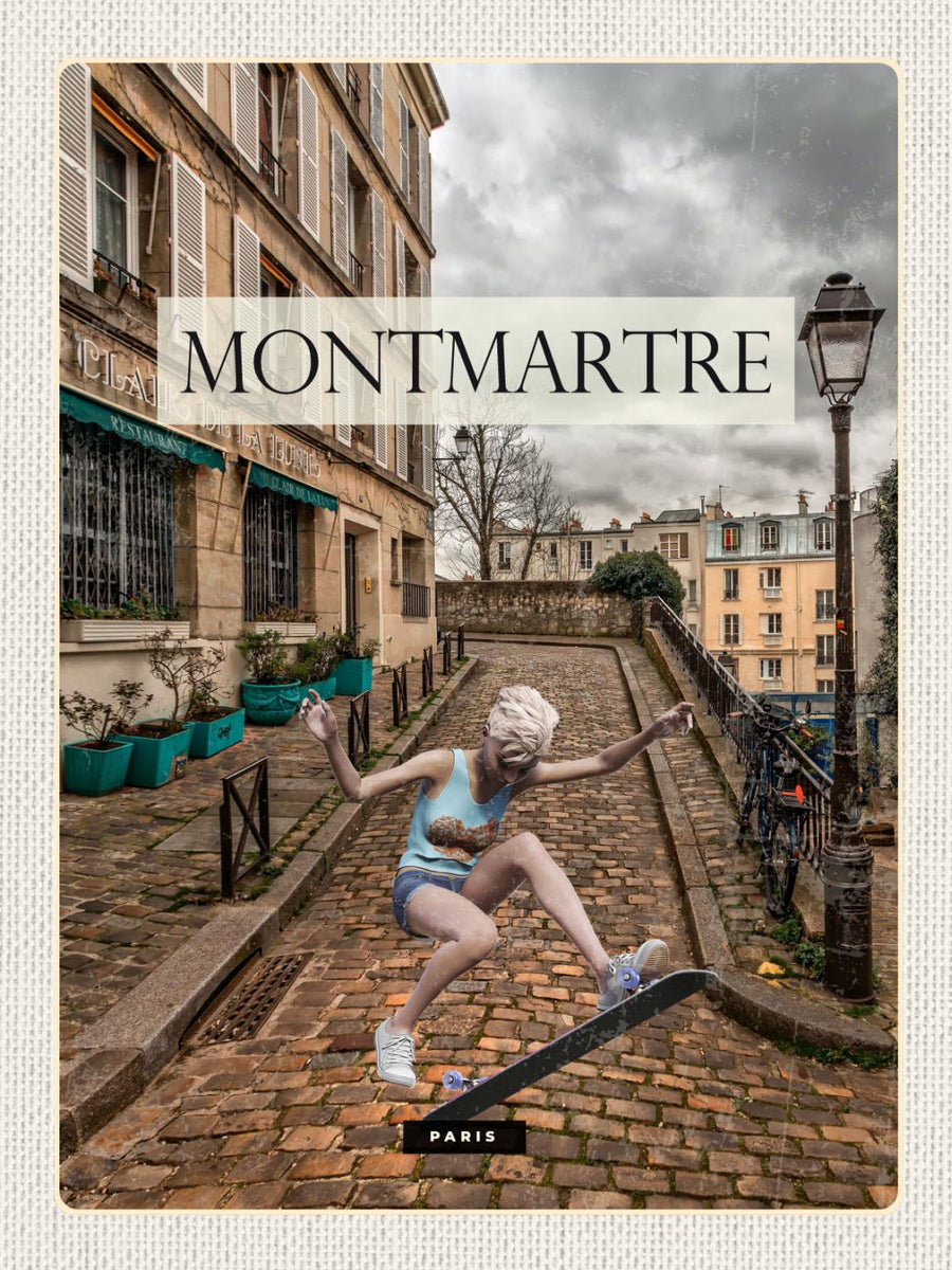 Verleihen Sie Ihrem Raum mit diesem einzigartigen Schild "Montmartre Paris Frankreich Statue Skater" eine kreative Note und lassen Sie die Lebensfreude dieser magischen Stadt direkt in Ihr Zuhause einziehen. Holen Sie sich ein Stück Paris und machen Sie jeden Tag zu einem besonderen Erlebnis. Bestellen Sie noch heute und verwandeln Sie Ihren Raum in ein Stück französischer Kultur und Kunst!