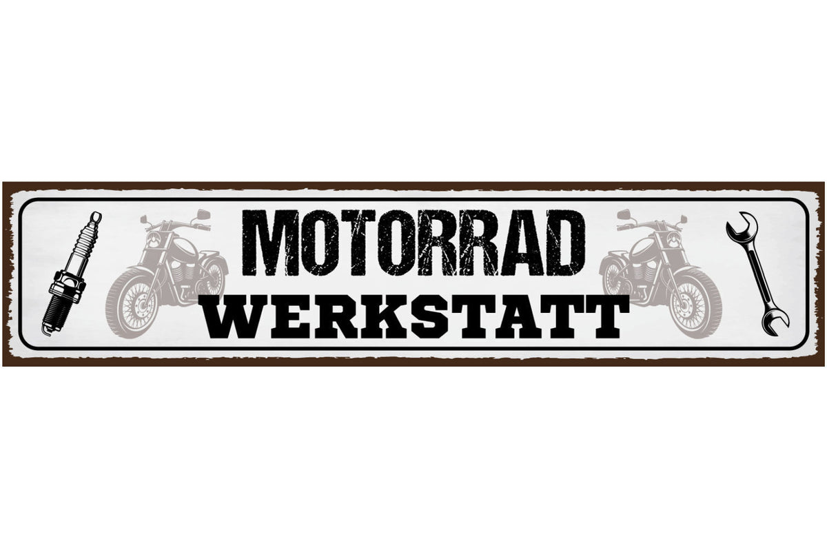 Schild Motorrad Werkstatt Mechaniker Bastler Bike Biker 46 x 10 Blech od.Holz Im Angebot