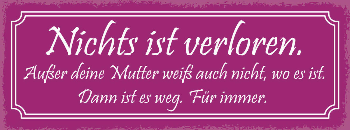 Schild Nichts Ist Verloren Außer Deine Mutter Weiß Nicht Wo Es Ist Weg Für Immer Im Angebot