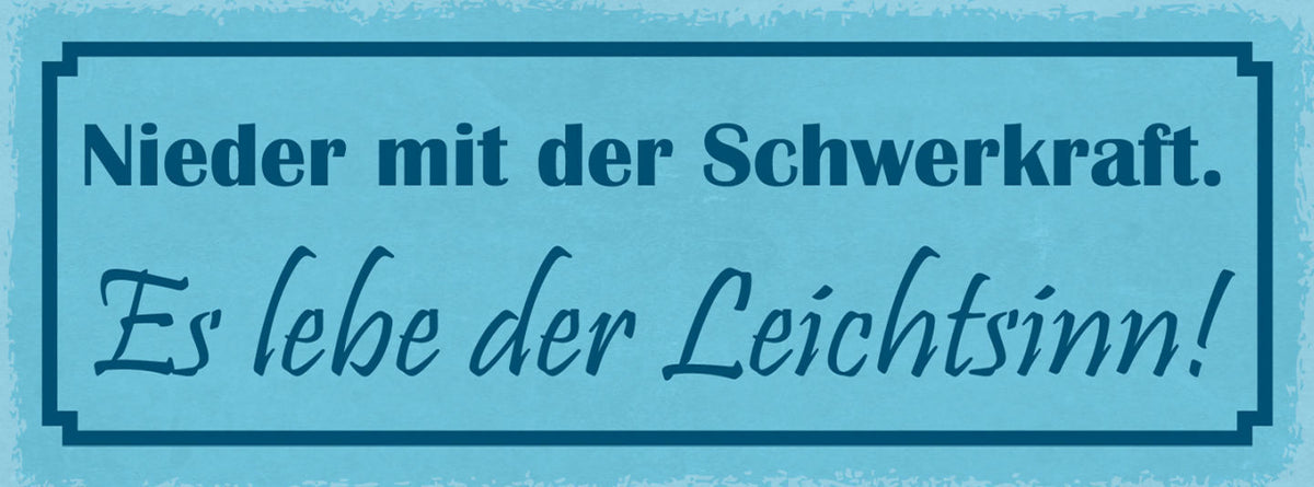 Schild Nieder Mit Der Schwerkraft Es Lebe Der Leichtsinn 27x10 Blech od.Holz Im Angebot