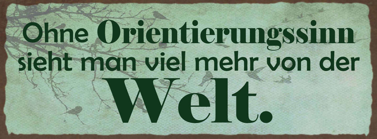 Schild Ohne Orientierungssinn Sieht Man Mehr Von Der Welt 27x10 Blech od.Holz Im Angebot