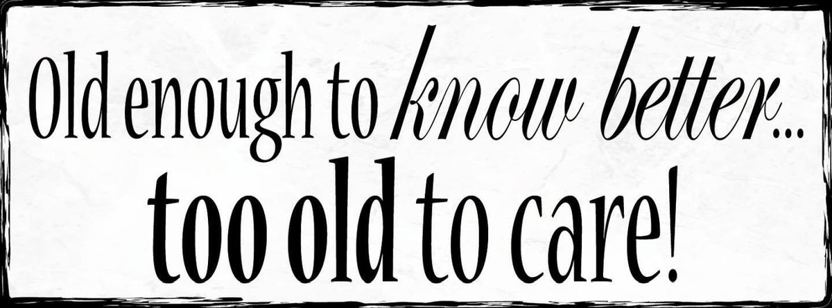 Schild Old Enough To Know Better Too Old To Care Alt Alter 27x10 Blech od.Holz Im Angebot