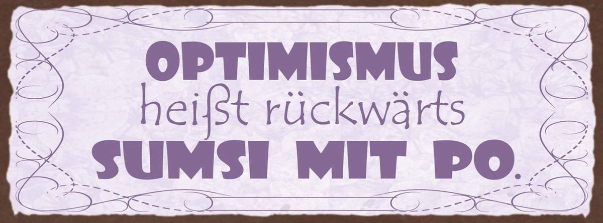 Schild Optimismus Heißt Rückwärts Sumsi Mit Po Positiv 27x10 Blech od.Holz Im Angebot