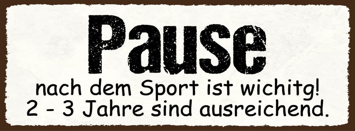 Schild Pause Nach Dem Sport Ist Wichtig 2-3 Jahre Ausreichend 27x10Blech od.Holz Im Angebot