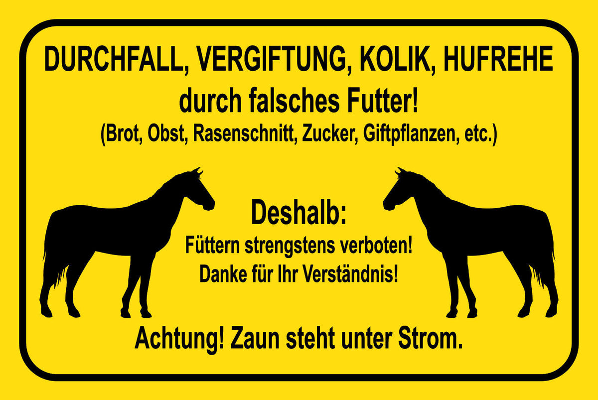 Schild Pferde füttern verboten Zaun Strom 12x18 / 20x30 / 30x40 Blech od. Holz Im Angebot