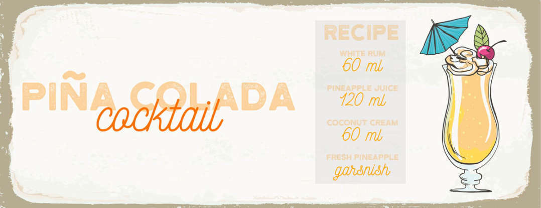 Schild Piña Colada Cocktail Rezept Bar Alkohol Drink Rum 27x10 Blech od.Holz Im Angebot