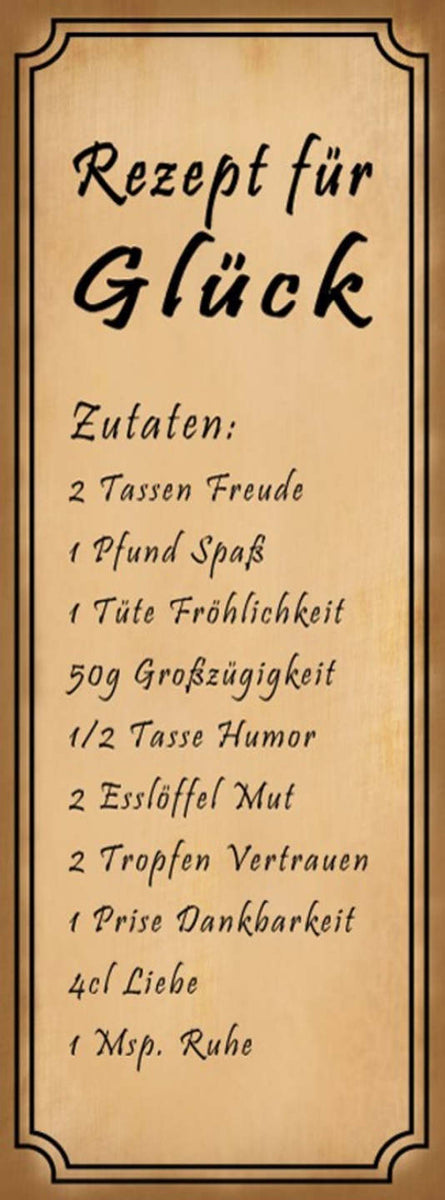 Schild Rezept Für Glück Freude Spaß Fröhlichkeit Humor Mut Vertrauen Liebe 27x10 Im Angebot