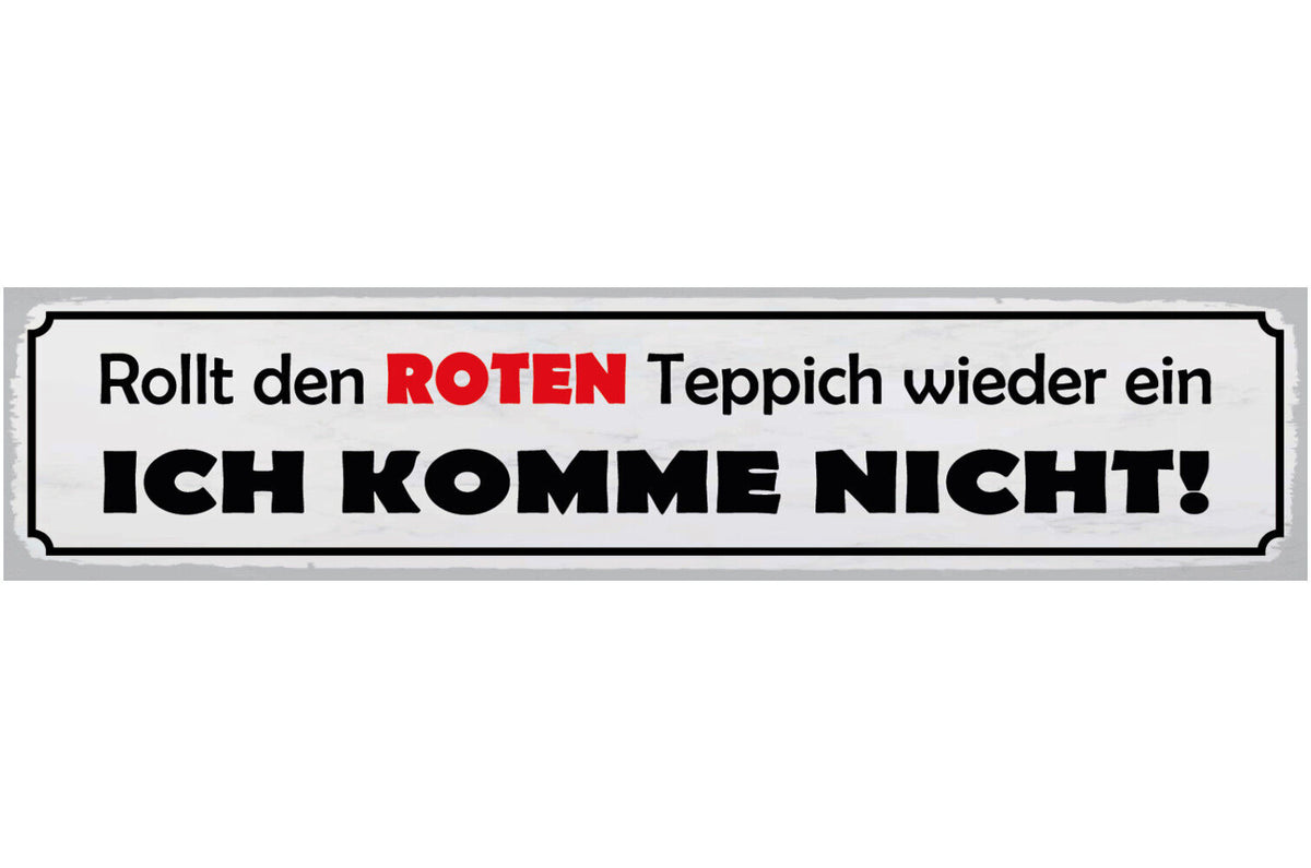 Schild Rollt Den Roten Teppich Wieder Ein Ich Komme Nicht 46 x 10 Blech od. Holz Im Angebot