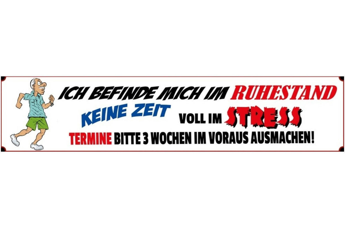 Schild Ruhestand Pension Stress Pensionist Zeit Termine 46 x 10 Blech od. Holz Im Angebot