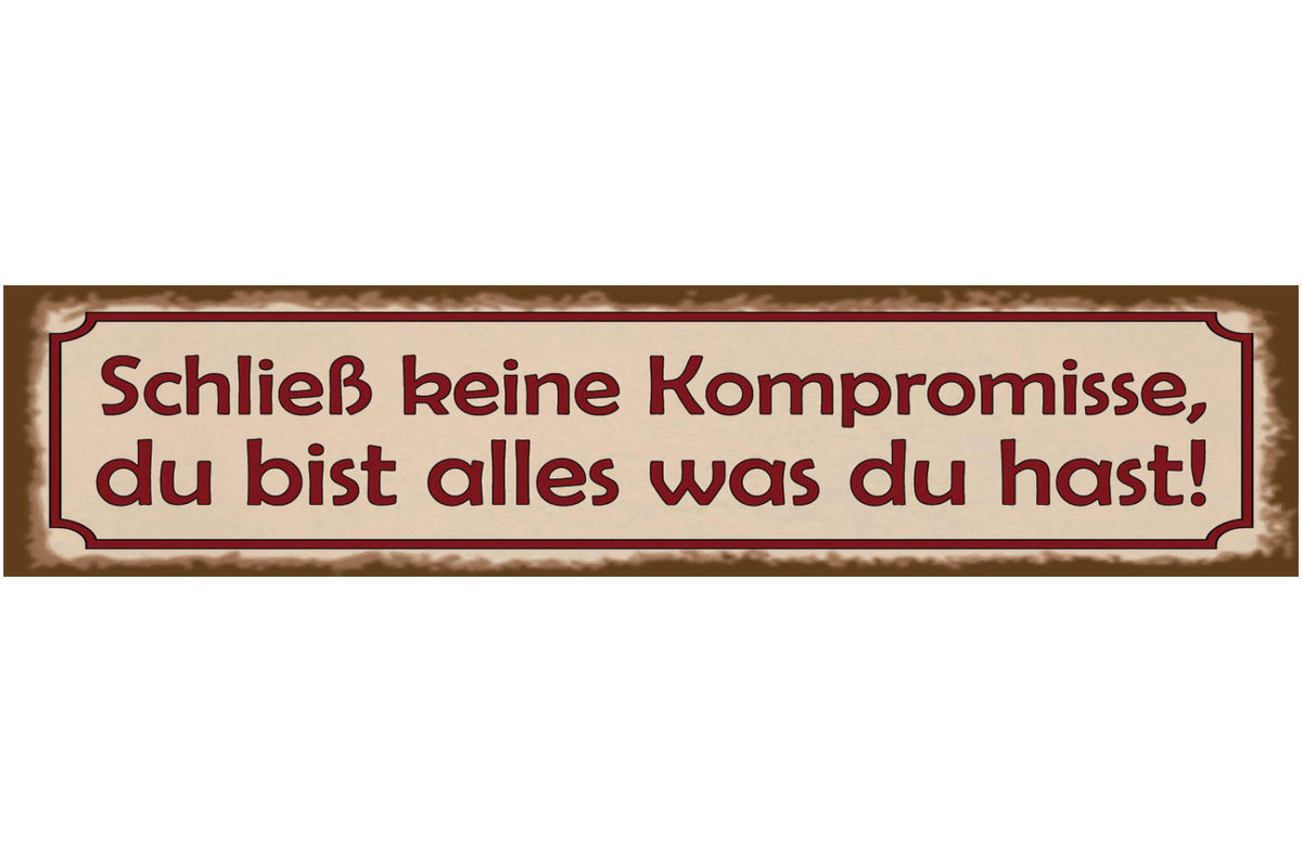 Schild Schließ Keine Kompromisse Du Bist Alles Was Du Hast 46 x 10 Blech od.Holz Im Angebot