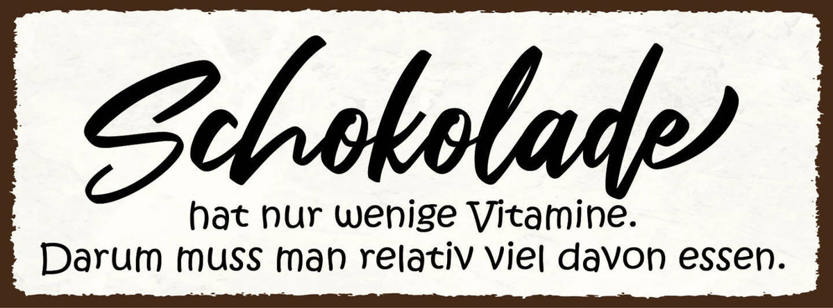 Schild Schokolade Hat Nur Wenige Vitamine Darum Relativ Viel Davon Essen 27x10 Im Angebot