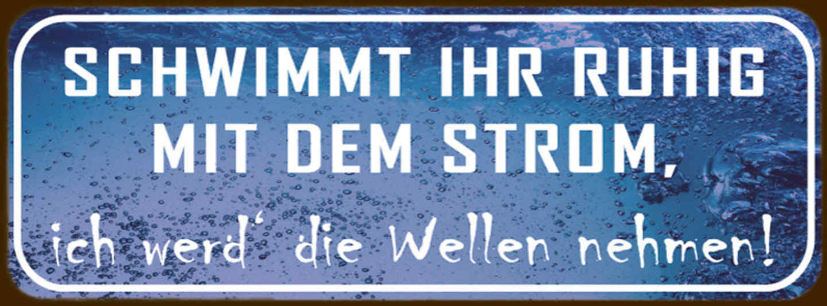 Schild Schwimmt Ihr Ruhig Mit Dem Strom Ich Werd Die Welle Nehmen 27 x 10 Im Angebot