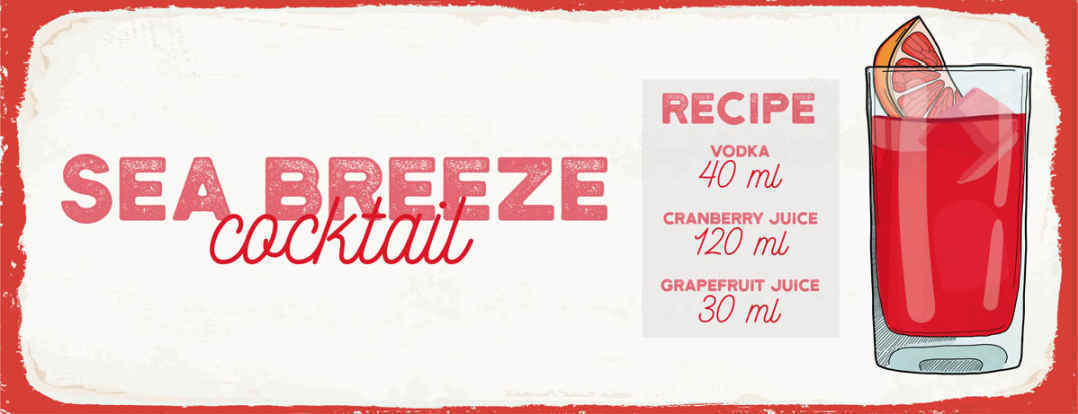 Schild Sea Breeze Cocktail Rezept Bar Alkohol Drink Wodka 27x10 Blech od.Holz Im Angebot