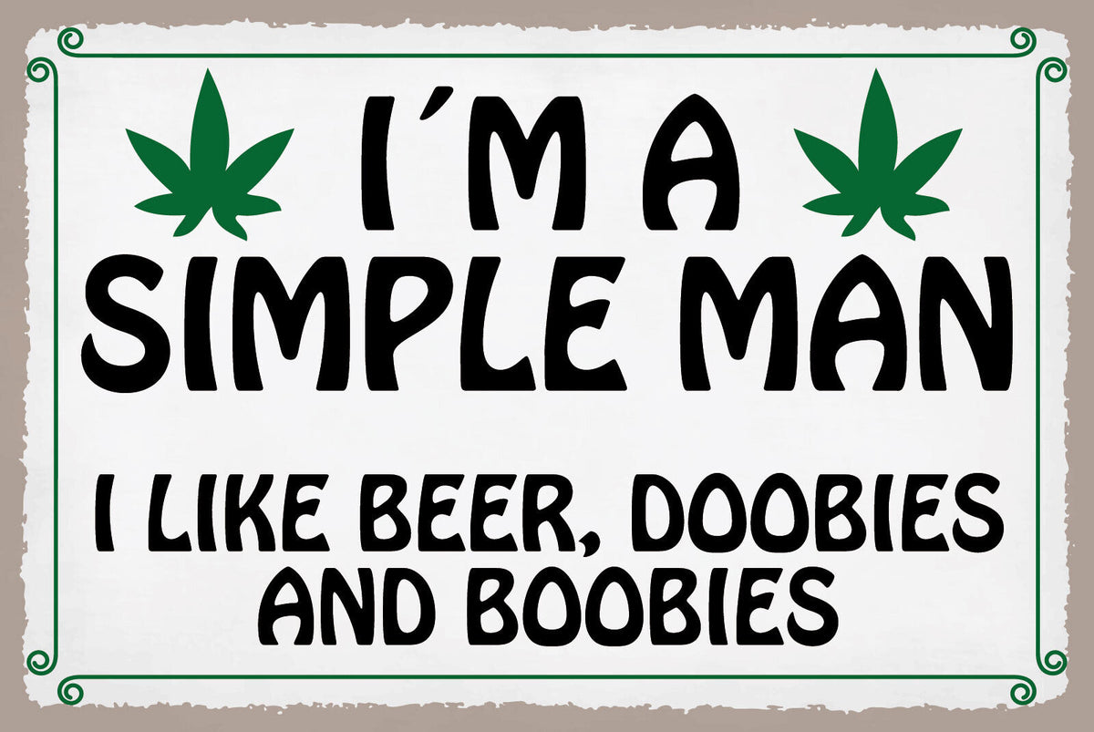 Schild Simple Man Bier Hanf Doobies Boobies 12x18 / 20x30 / 30x40 Blech od. Holz Im Angebot
