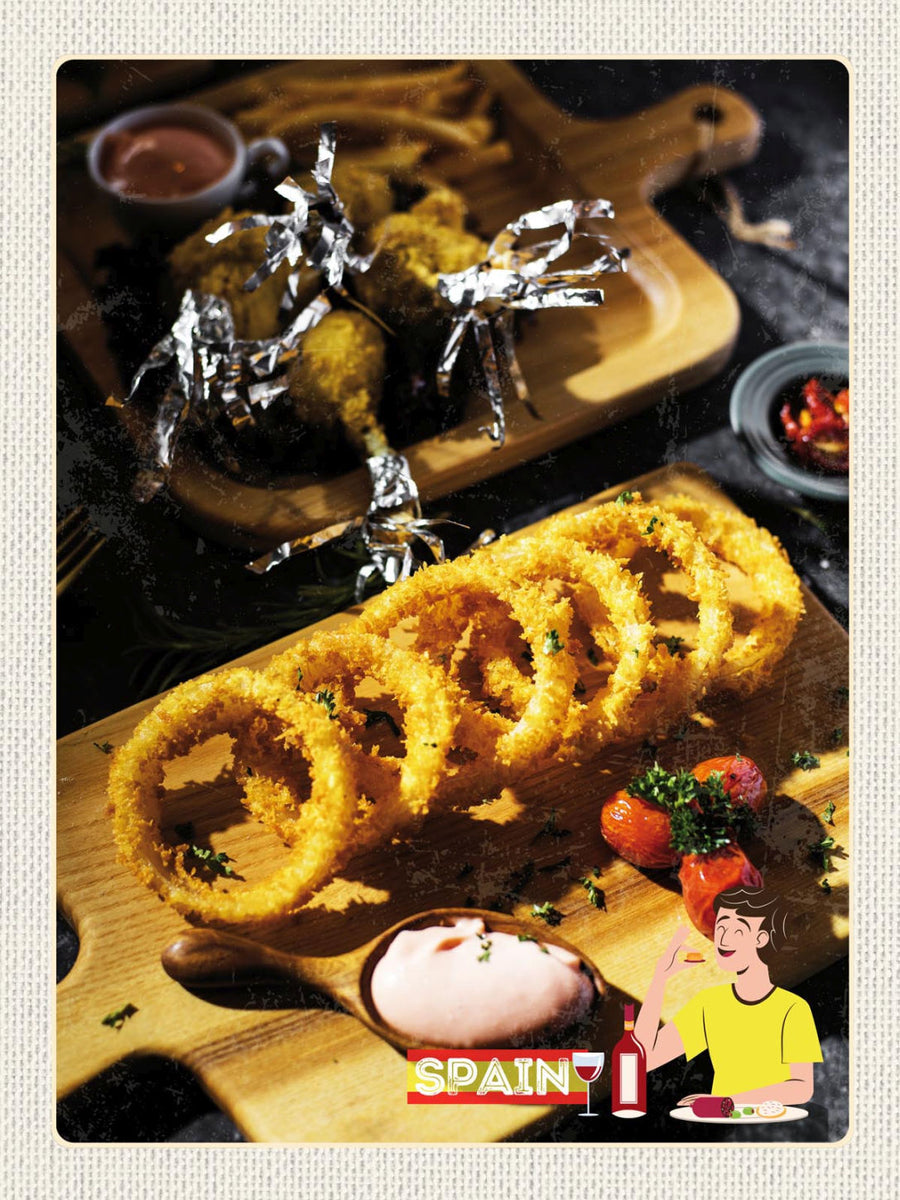 Entdecken Sie unser hochwertiges Schild "Schild Spain Spanien Zwiebelringe Essen Spezialität", das in verschiedenen Größen von 12x18 cm, 20x30 cm bis hin zu 30x40 cm erhältlich ist. Dieses dekorative Element ist nicht nur ein echter Hingucker, sondern auch ein symbolisches Stück spanischer Kulinarik, das die Liebe zur traditionellen Esskultur Spaniens repräsentiert.