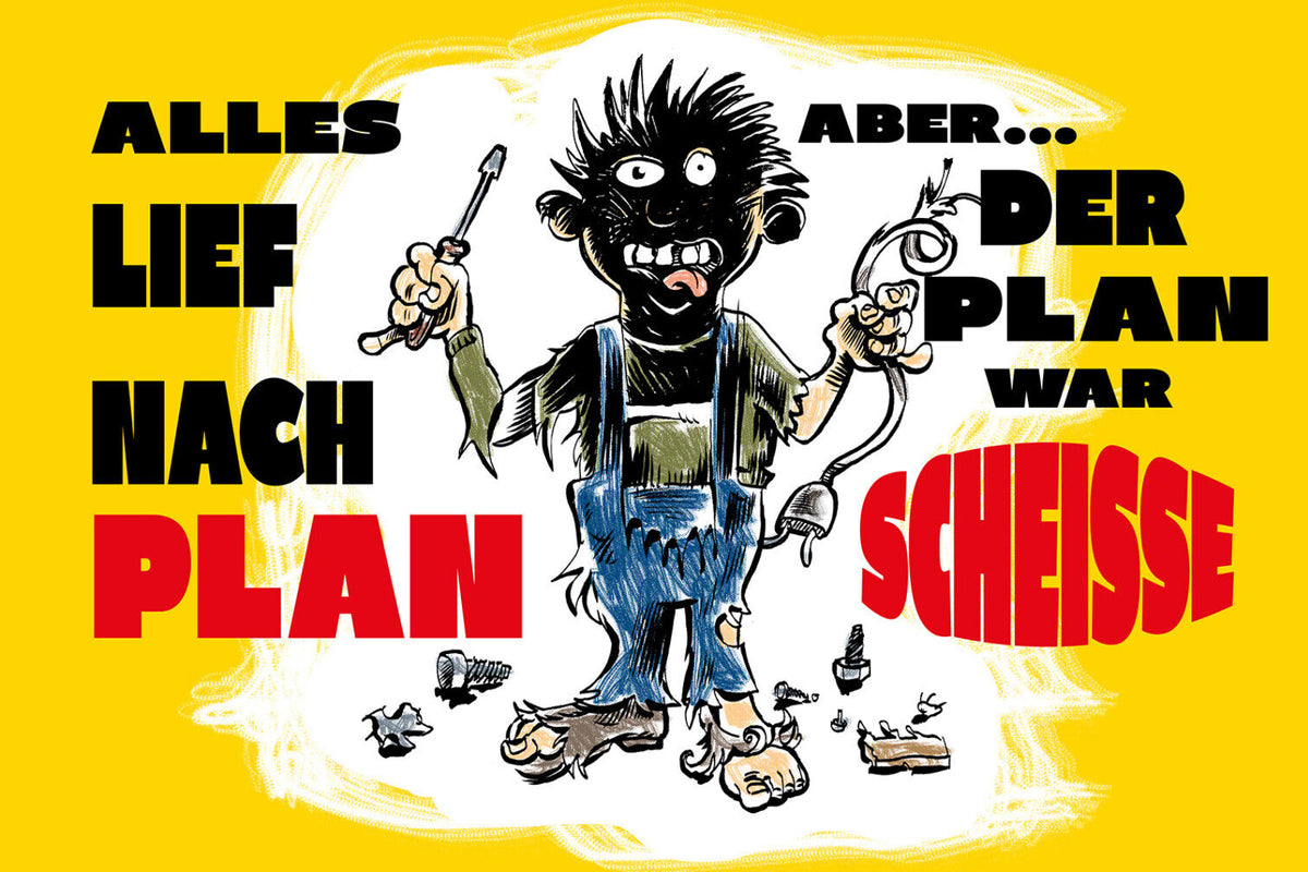 Schild Spruch Alles lief nach Plan aber Plan war scheiße Katastrophe JW Im Angebot