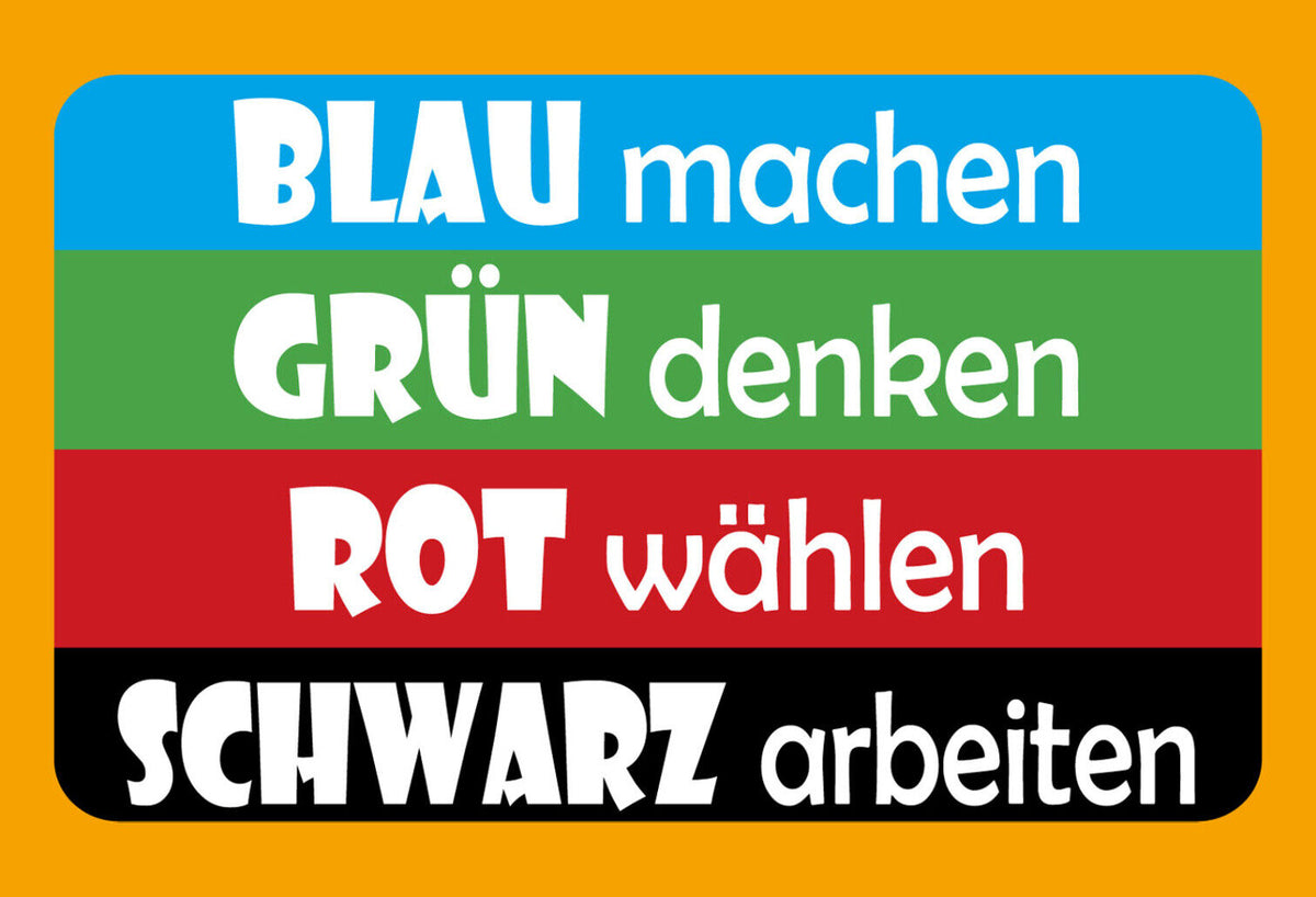 Schild Spruch Blau machen Grün denken Schwarz arbeiten Politik JW Im Angebot