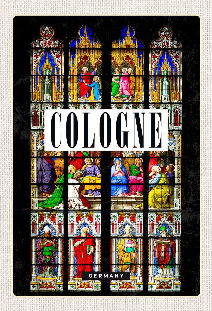 Schild Spruch Cologne Germany Köln Deutschland Kirche Mosaikfenster bunt JW Im Angebot