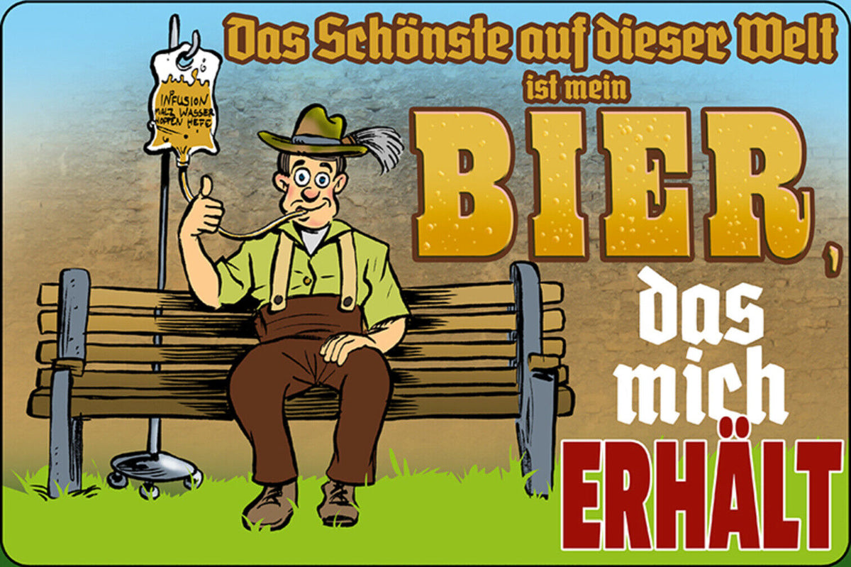 Schild Spruch Das schönste auf dieser Welt ist mein Bier Infusion Alkohol JW Im Angebot