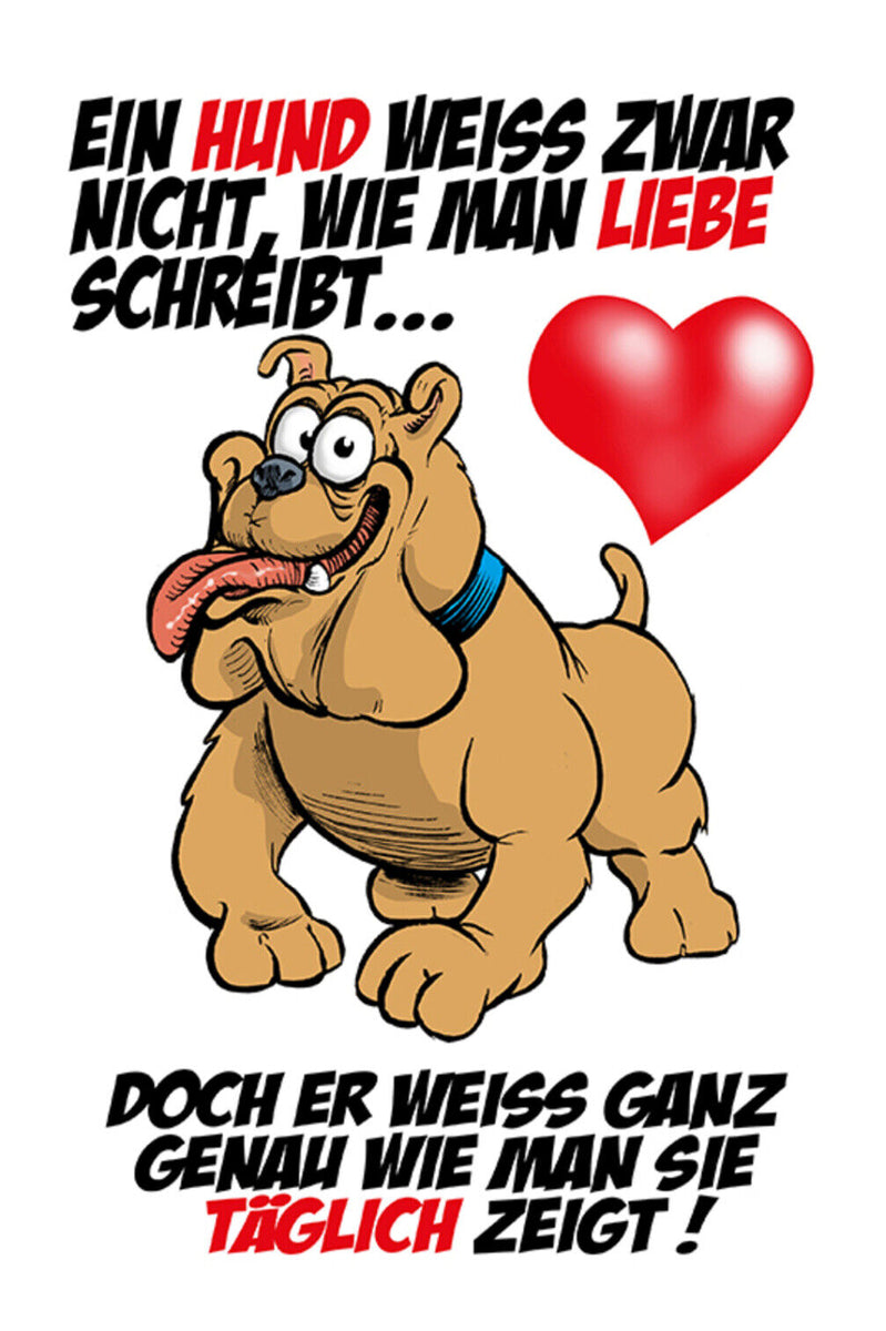 Schild Spruch Ein Hund weiß zwar nicht wie man Liebe schreibt doch er weiß JW Im Angebot