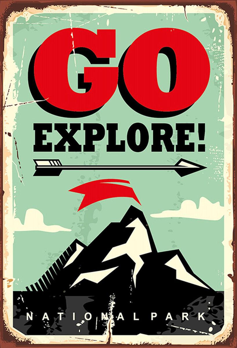 Schild Spruch Go Explore Los Entdecke Nationalpark Comic Urlaub Berg JW Im Angebot