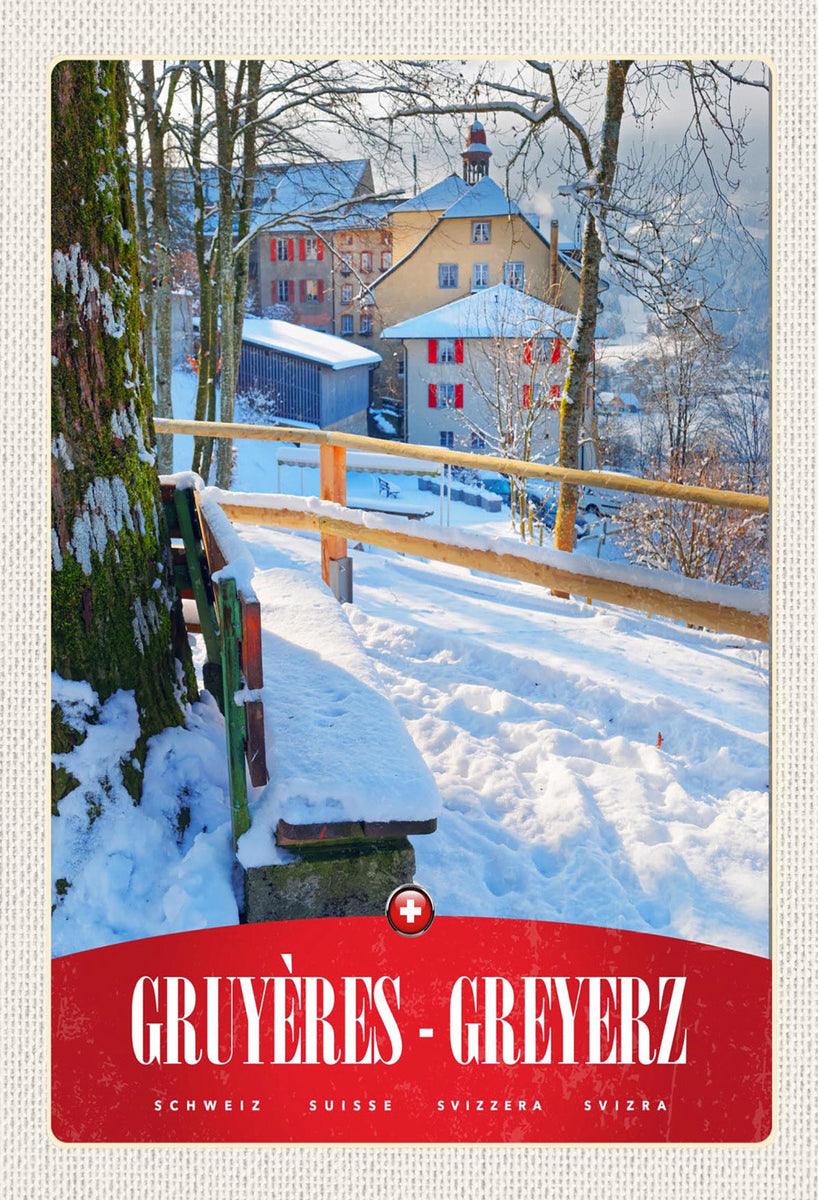 Schild Spruch Gruyeres-Greyerz Switzerland Schweiz Winter Weg Häuser JW Im Angebot