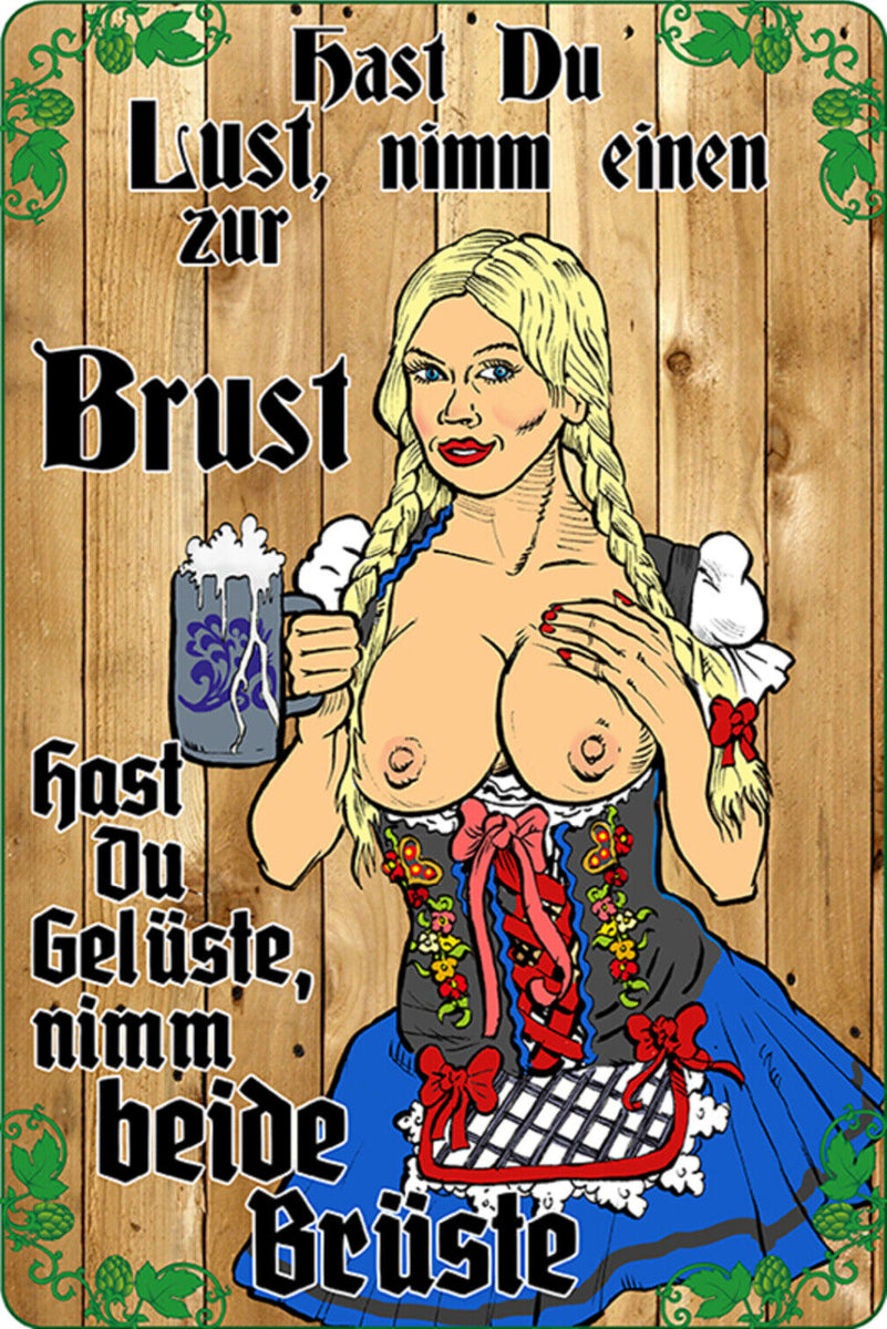 Schild Spruch Hast du Lust nimm einen zur Brust Gelüste Brüste Frauen Alkohol JW Im Angebot