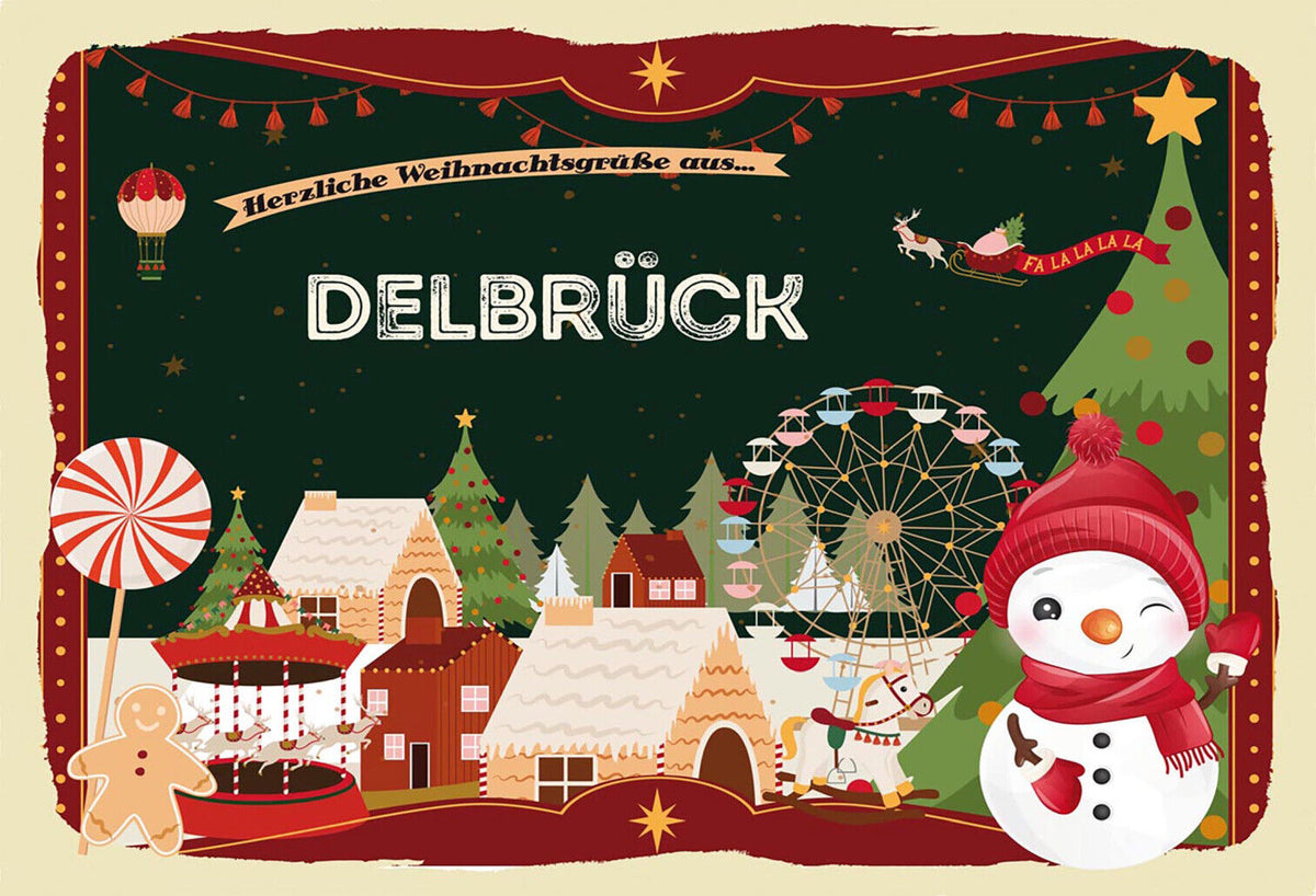 Schild Spruch Herzliche Weihnachtsgrüße aus Delbrück Comic Schneemann JW Im Angebot