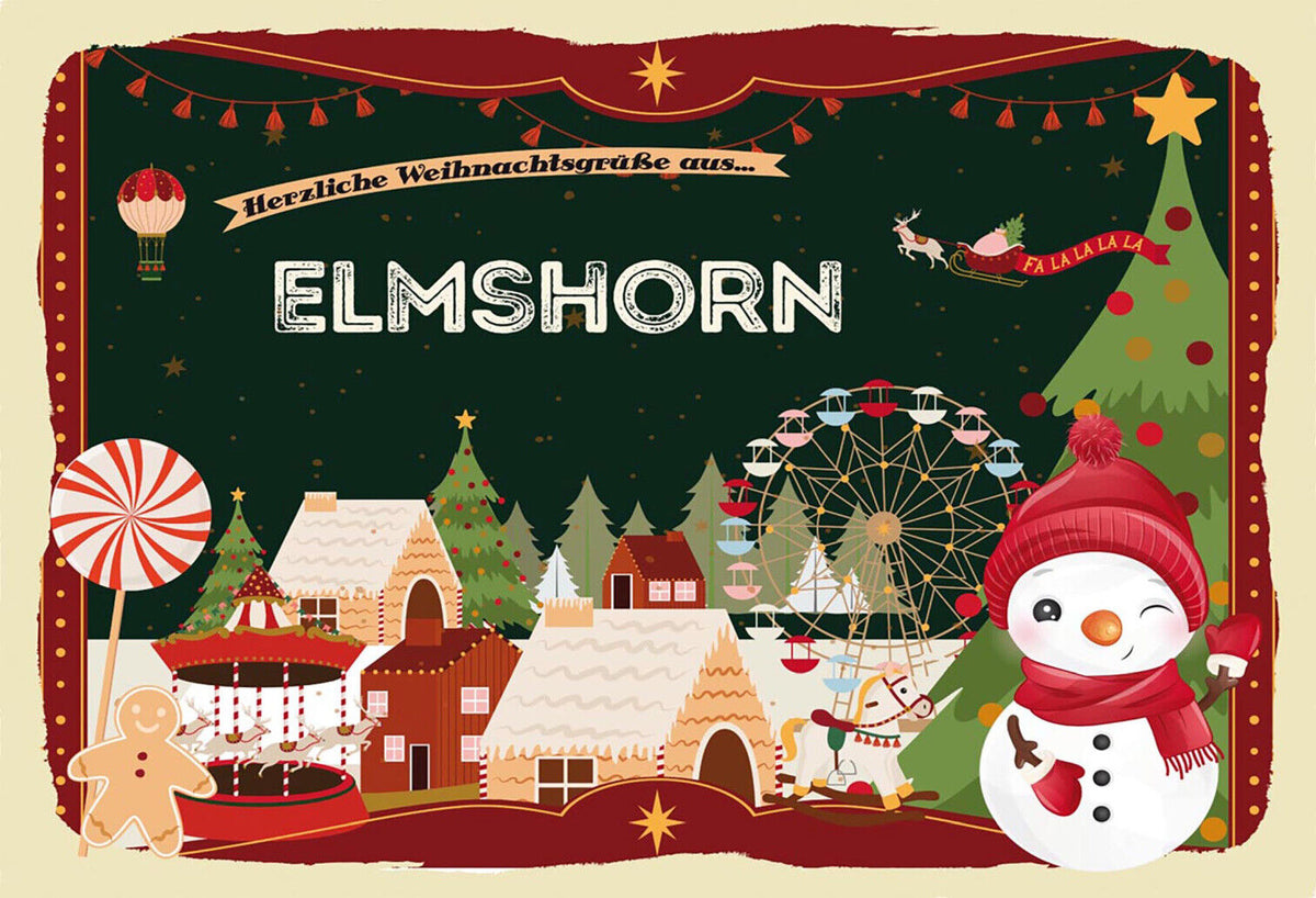 Schild Spruch Herzliche Weihnachtsgrüße aus Elmshorn Comic Schneemann JW Im Angebot