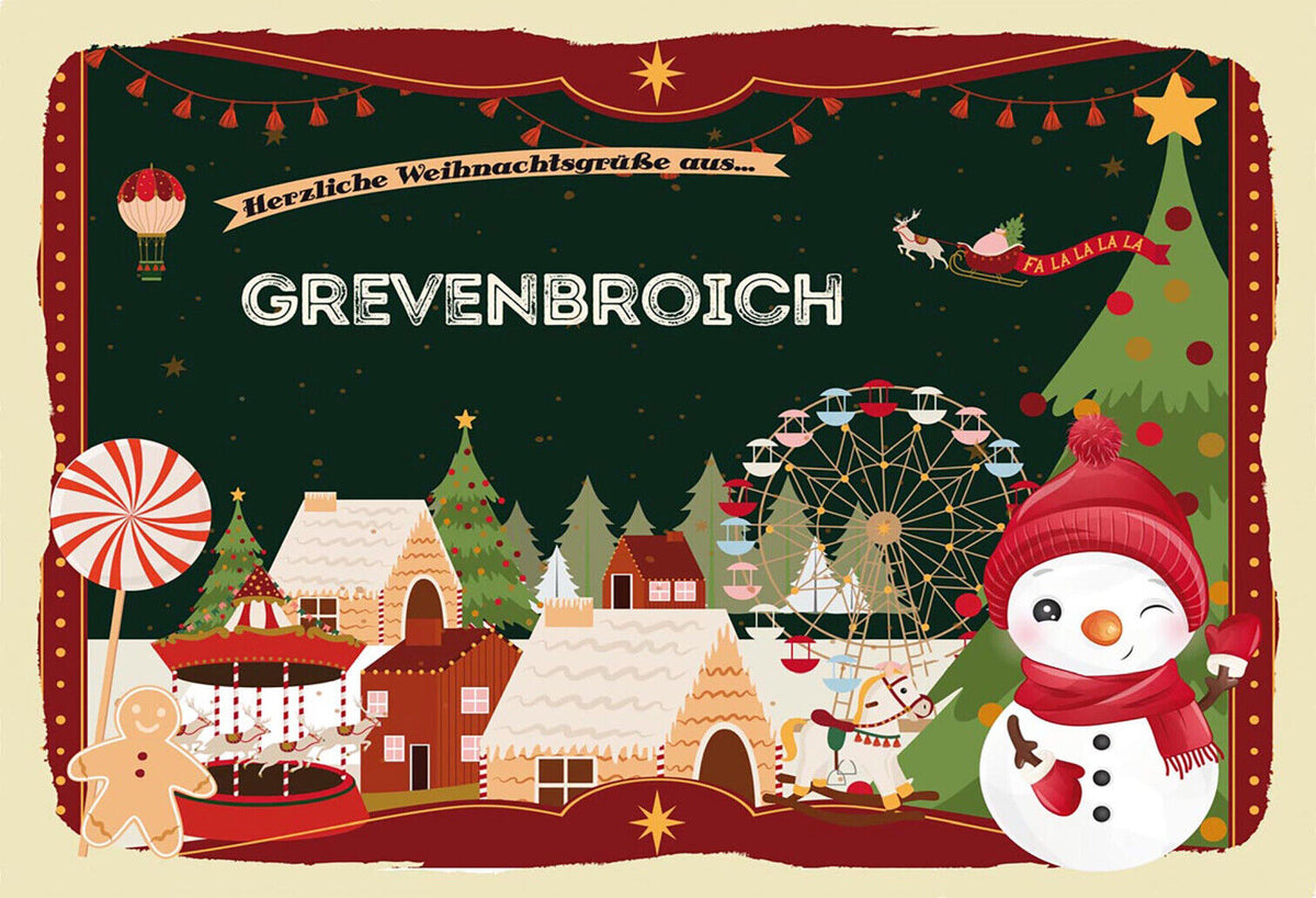 Schild Spruch Herzliche Weihnachtsgrüße aus Grevenbroich Comic Schneemann JW Im Angebot