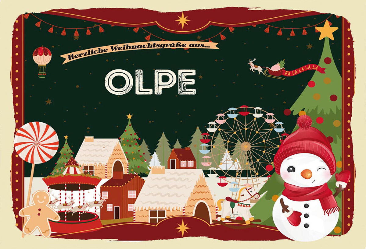 Schild Spruch Herzliche Weihnachtsgrüße aus Olpe Comic Schneemann JW Im Angebot