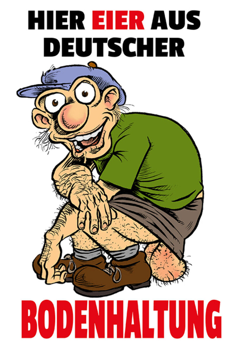 Schild Spruch Hier EIER aus deutscher Bodenhaltung Männer Comic JW Im Angebot
