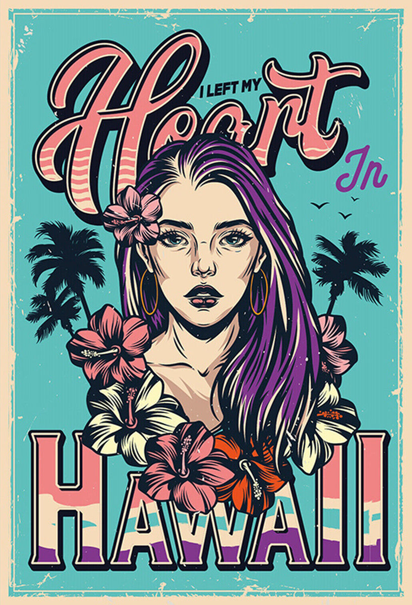 Schild Spruch I Left My Heart in Hawaii Herz in Hawaii gelassen Frau Comic JW Im Angebot