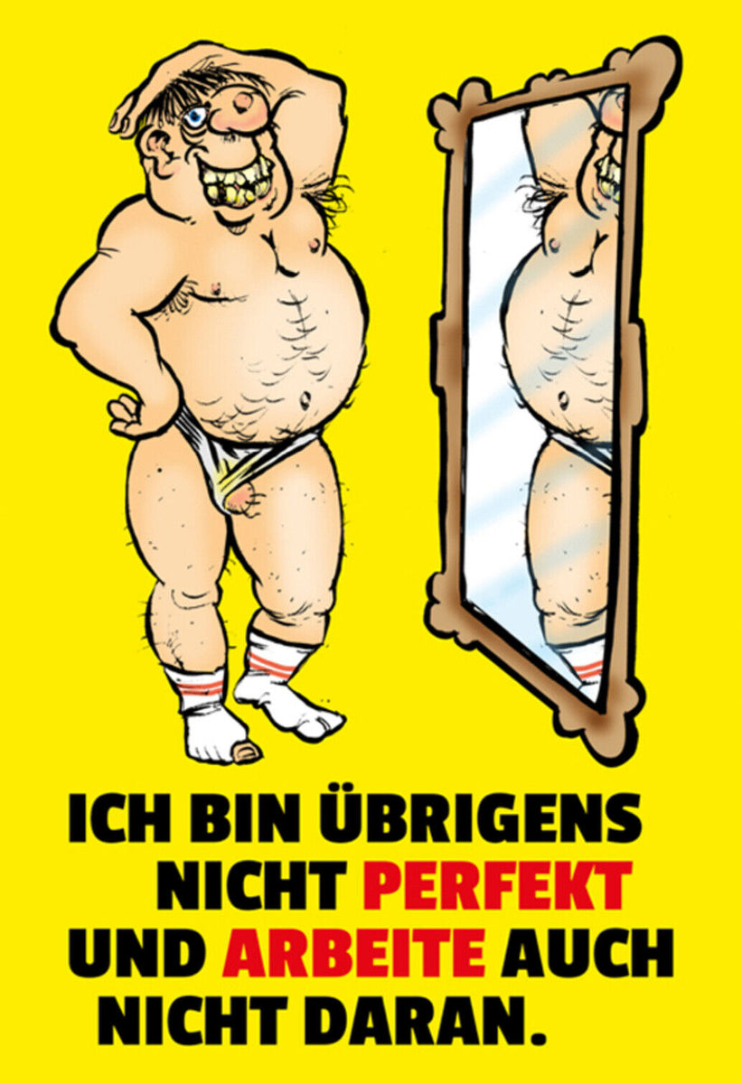 Schild Spruch Ich bin übrigens nicht perfekt und arbeite nicht daran Männer JW Im Angebot