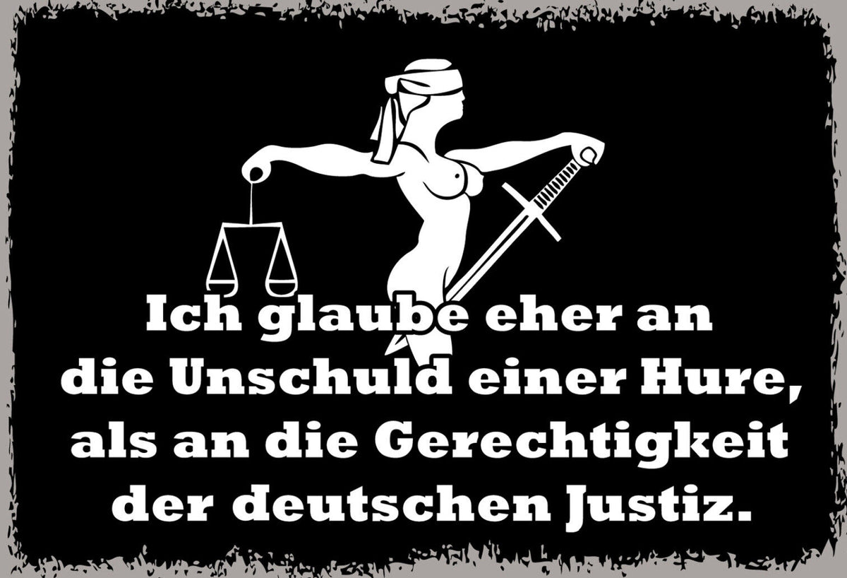 Schild Spruch Ich glaube an Unschulde Hure als Gerechtigkeit deutschen Justiz JW Im Angebot