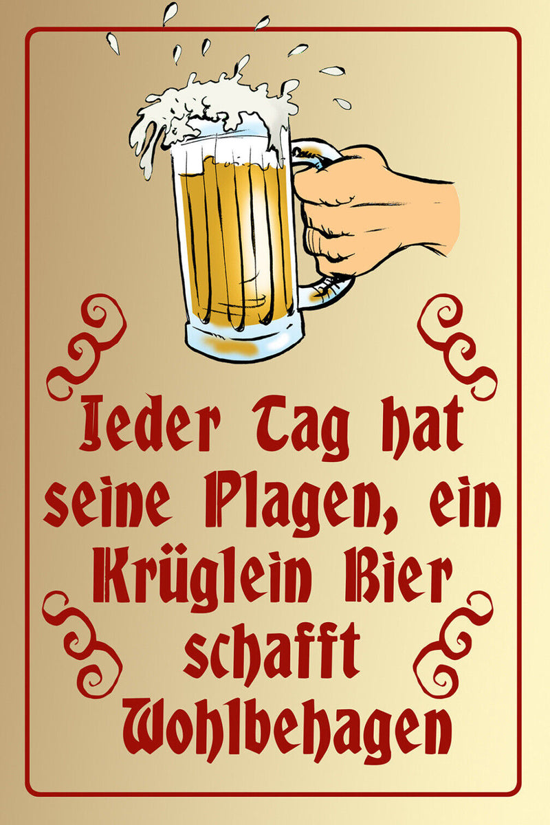 Schild Spruch Jeder Tag seine Plagen Bier schafft wohlbehaben Alkohol JW Im Angebot