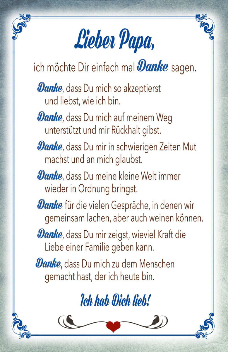 Schild Spruch Lieber Papa Ich möchter dir einfach mal Danke sagen Familie JW Im Angebot