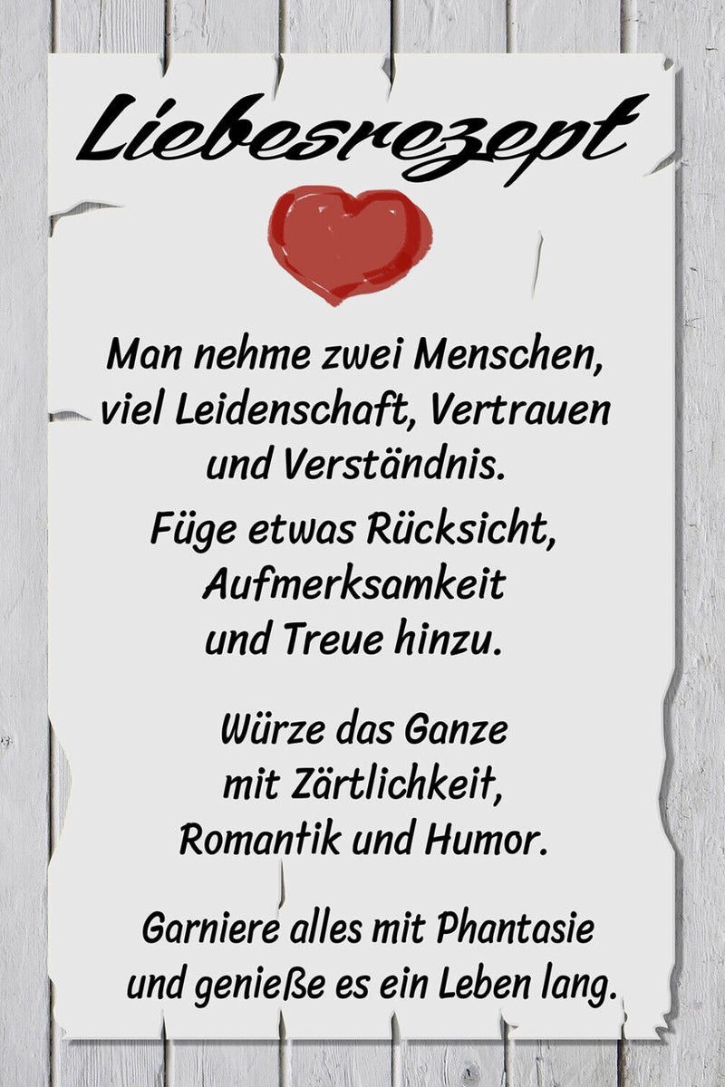 Schild Spruch Liebesrezept Leidenschaft Vertrauen Verständnis Rücksicht Treue JW Im Angebot