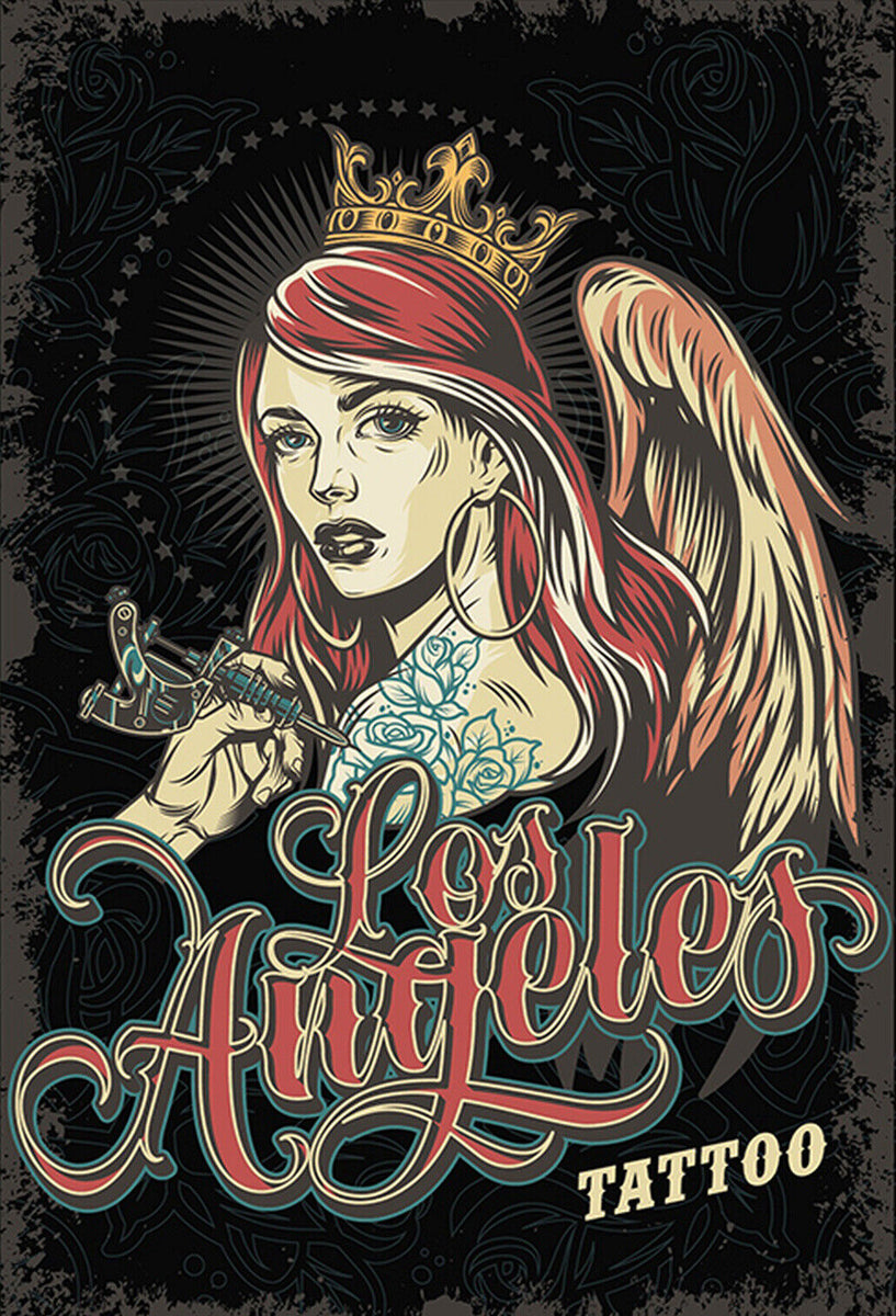 Schild Spruch Los Angeles Tattoo Frau Prinzessin Engel Comic JW Im Angebot