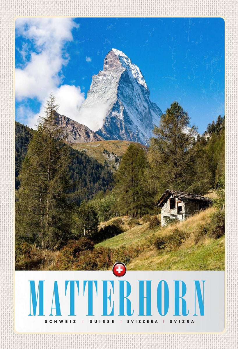 Schild Spruch Matterhorn Switzerland Schweiz Berge Berhütte Wald JW Im Angebot