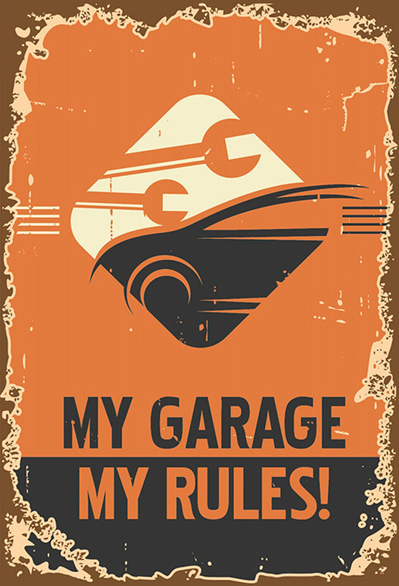 Schild Spruch My garage my rules Meine Autowerkstatt Meine Regeln Comic JW Im Angebot
