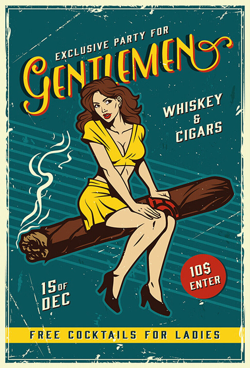 Schild Spruch Party for gentlemen Whiskey Cigars Sexy Frau Comic Alkohol JW Im Angebot