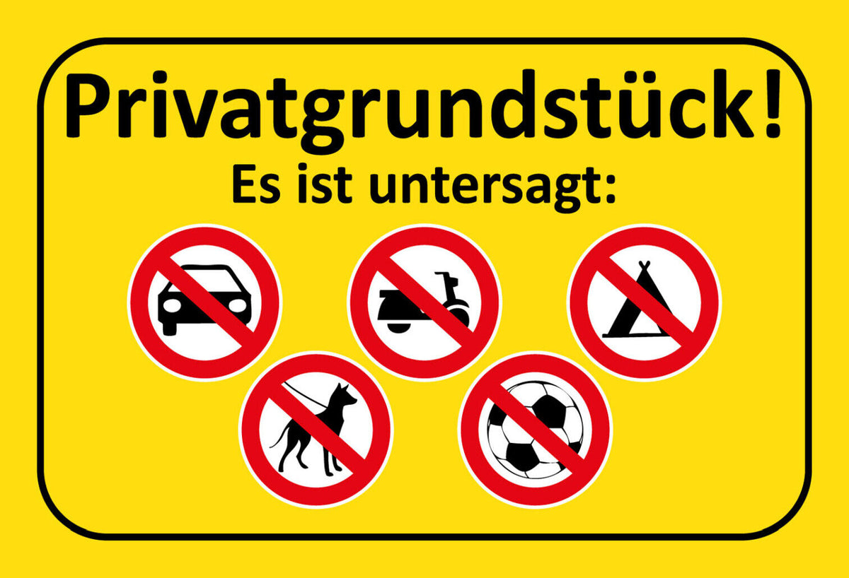 Schild Spruch Privatgrundstück! Es ist untersagt Autofahren Hunde Campen JW Im Angebot