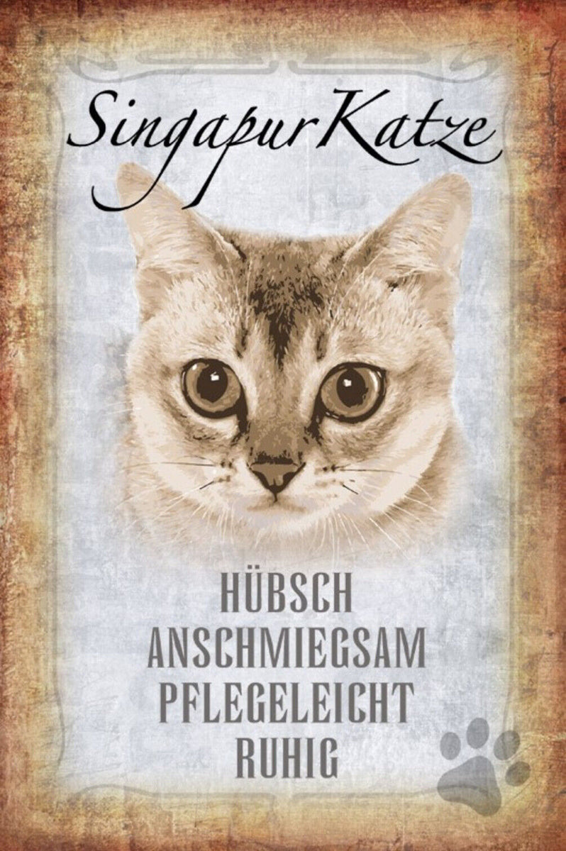 Schild Spruch Singapur Katze Steckbrief Hübsch Pflegeleicht JW Im Angebot